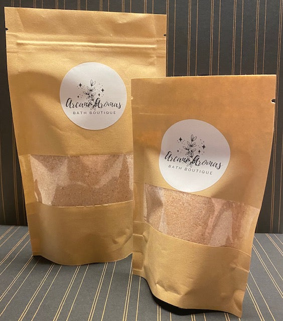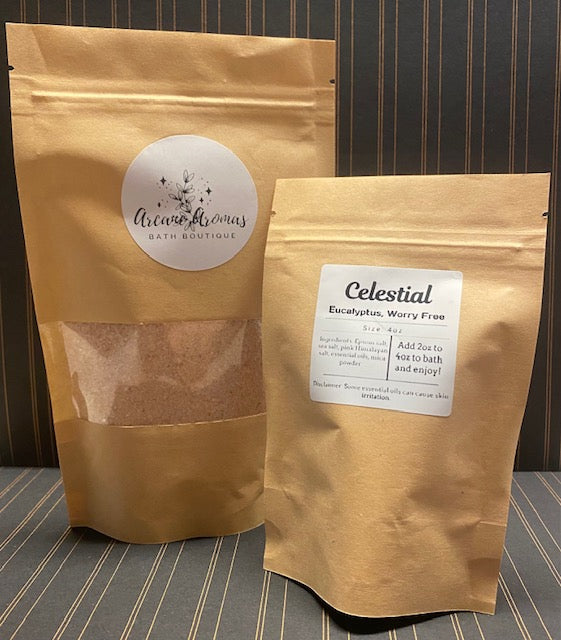 Ingredients: Epsom Salt, Pink Himalayan Salt, Course Sea Salt, Essential Oils (Eucalyptus and Worry Free), and Mica Powder for Colorant.